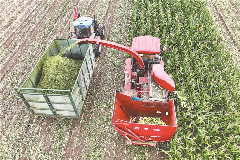 收割現場一派忙碌景象,農場調配的2臺青貯下棒一體收割機高效作業(yè),實現莖穗同步收獲,效率較傳統模式提升3倍以上,10輛青貯運輸車與4輛糯玉米棒運輸車有序配合,日均完成150畝。作業(yè)中,12名黨員主動組成“助農突擊隊”,深入田壟撿拾玉米,確保顆粒歸倉。