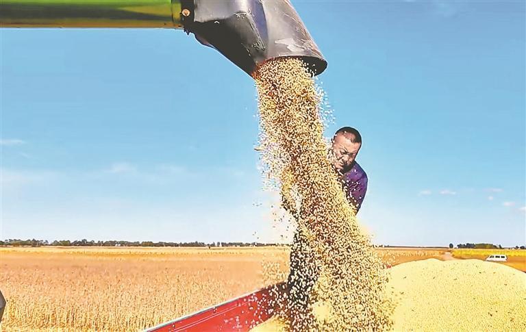 國慶假日,豐收時(shí)節(jié)。秋風(fēng)拂過寶清縣青原鎮(zhèn)的田野,連片的大豆田泛起金黃浪涌,飽滿的豆莢壓彎豆稈,收割機(jī)轟鳴作業(yè),農(nóng)戶們忙著分揀、裝袋,豐收的喜悅在田間地頭蔓延。