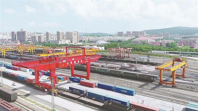 6日上午,百年口岸綏芬河鐵路車站換裝貨場內(nèi),塔吊在高效有序地對進出境貨運列車進行著換裝作業(yè)。