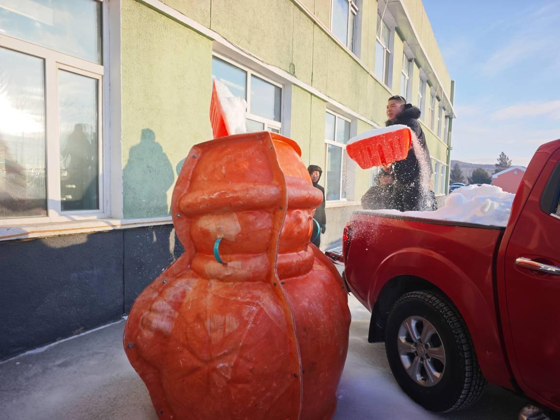 活動中,林場干部職工分工協(xié)作,有的手持鐵鍬鏟起蓬松的積雪,精準(zhǔn)填入雪人模具,用力按壓緊實,確保雪人身軀穩(wěn)固有型;有人手持小鏟子,細(xì)細(xì)修整雪人的輪廓,讓雪人的外觀更加美觀......鮮紅的圍巾繞在雪人脖頸,在白雪的映襯下格外耀眼,彩色涂料則成了創(chuàng)意的畫筆,大家或勾勒出彎彎的微笑嘴角,或點上心形的紐扣,給雪人增添了幾分俏皮與可愛。經(jīng)過大家的共同努力,一個個憨態(tài)可掬的“白胖子”便悉數(shù)亮相,成為林場冬日里一道獨特的風(fēng)景線。