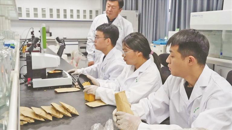 在國(guó)家現(xiàn)代農(nóng)業(yè)產(chǎn)業(yè)園的實(shí)驗(yàn)室,來自東北農(nóng)業(yè)大學(xué)的研究生正在對(duì)大豆種子進(jìn)行電腦數(shù)粒、離心分析密度等工作,為選育出高產(chǎn)、優(yōu)質(zhì)、多抗的專用大豆品種提供基礎(chǔ)數(shù)據(jù)支撐。
