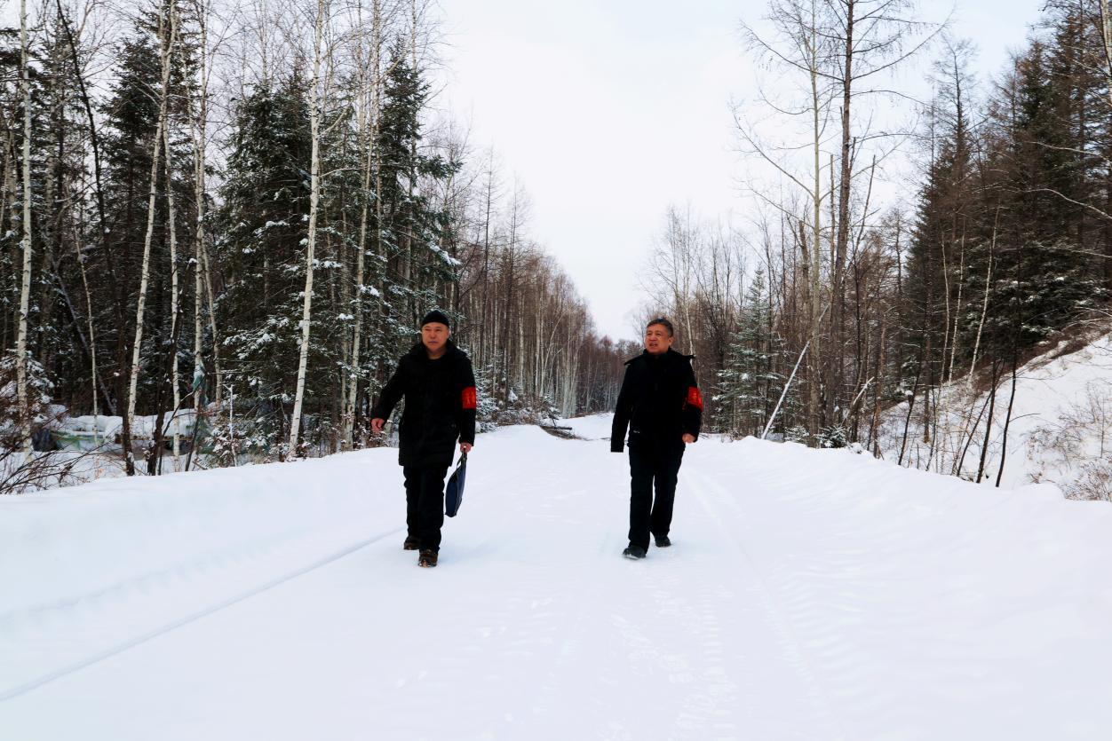 阿木爾林業(yè)局督導(dǎo)檢查組突擊檢查野外作業(yè)點(diǎn)凍貨存放點(diǎn),檢查是否有野生動(dòng)物制品(王力 攝)
