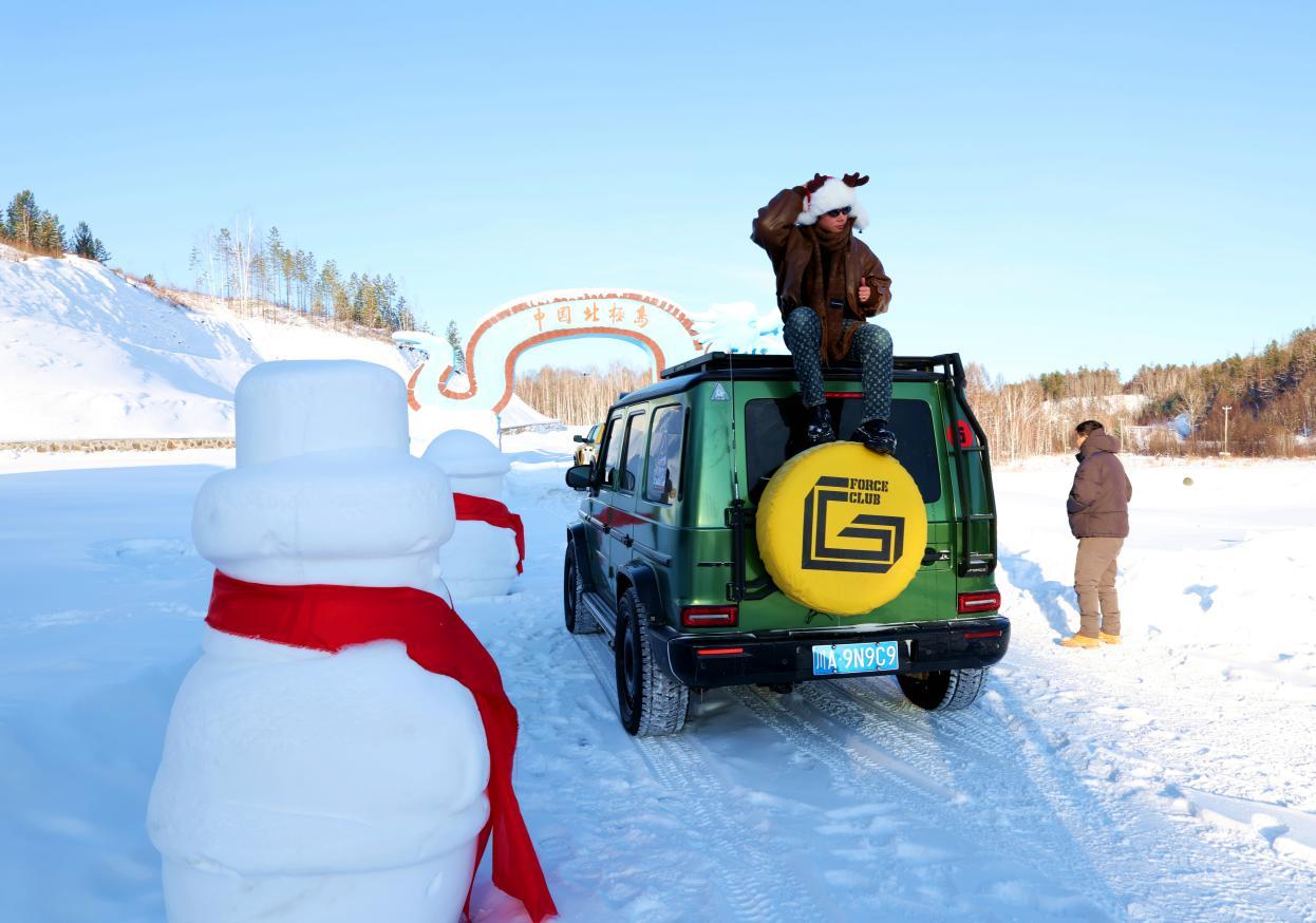 當(dāng)日中午,隨著車隊(duì)緩緩駛?cè)氡睒O島景區(qū)南門,美麗的雪地廣場瞬間被熱情點(diǎn)燃。游客們紛紛走下車,不顧零下數(shù)十度的嚴(yán)寒,或在松軟的雪地上玩起汽車漂移,或與雪人合影留念,或揚(yáng)起漫天雪花享受雪的輕撫,汽車馬達(dá)的轟鳴與歡聲笑語交織回蕩,讓這片銀裝素裹的天地化作歡樂的海洋。