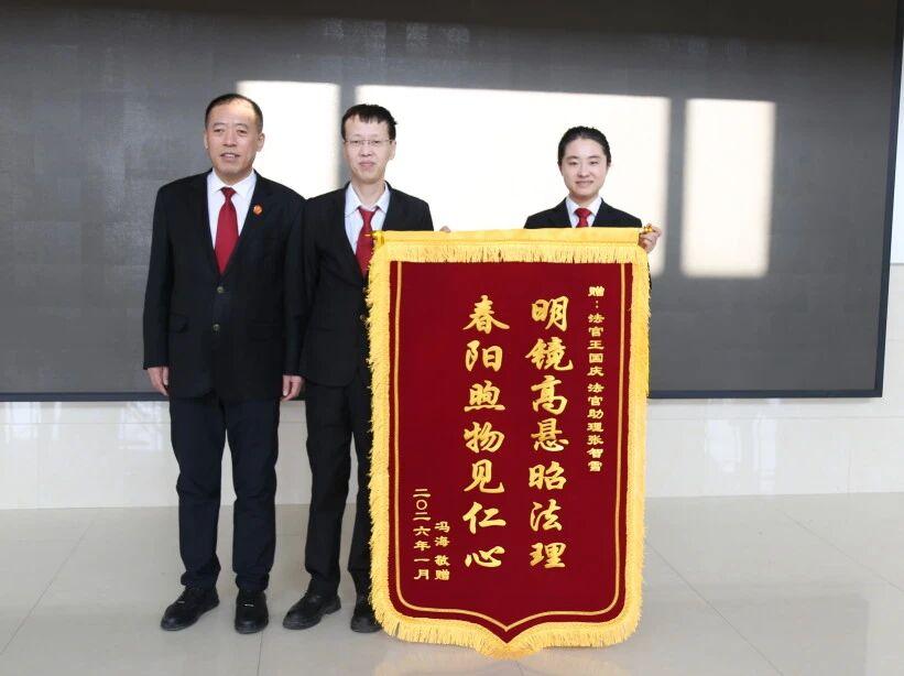黑龍江經(jīng)濟(jì)網(wǎng)訊(董慧瑩 張智雪)1月15日,青岡縣人民法院王國慶法官收到當(dāng)事人贈(zèng)予的錦旗,“明鏡高懸昭法理 春陽煦物見仁心”十六個(gè)金字熠熠生輝,既是當(dāng)事人對(duì)案件審理的由衷認(rèn)可,更是對(duì)法院司法工作的高度贊譽(yù),為冬日里的法院增添暖意。