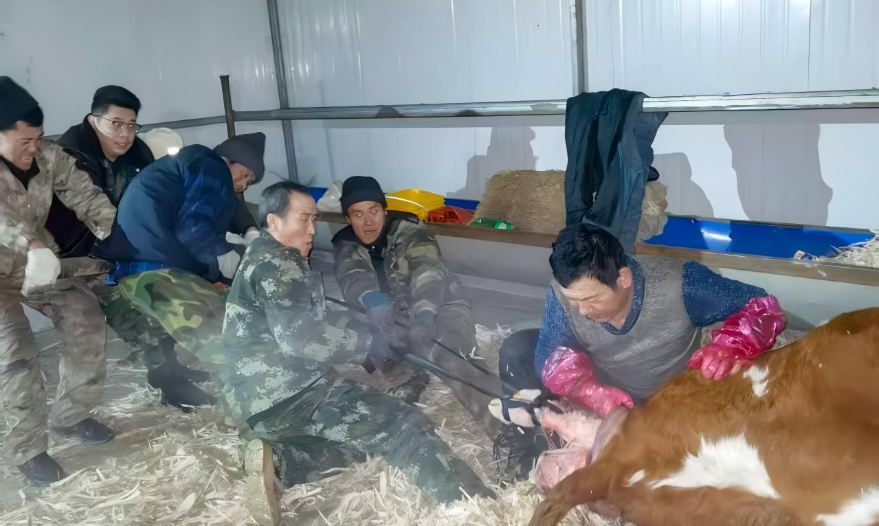 趕到牛棚時,發(fā)現(xiàn)一頭棕白花母牛臥在干草堆上,四肢抽搐,腹部劇烈起伏卻始終無法完成生產。 “別急,我們現(xiàn)在應該利用助產工具,現(xiàn)在必須立刻進行人工助產拖拽!” 民警一邊安撫養(yǎng)殖戶的情緒,一邊分工協(xié)作。兩個小時后,隨著母牛一聲響亮的低吼,在眾人的合力幫助下 ,小牛犢成功降生。