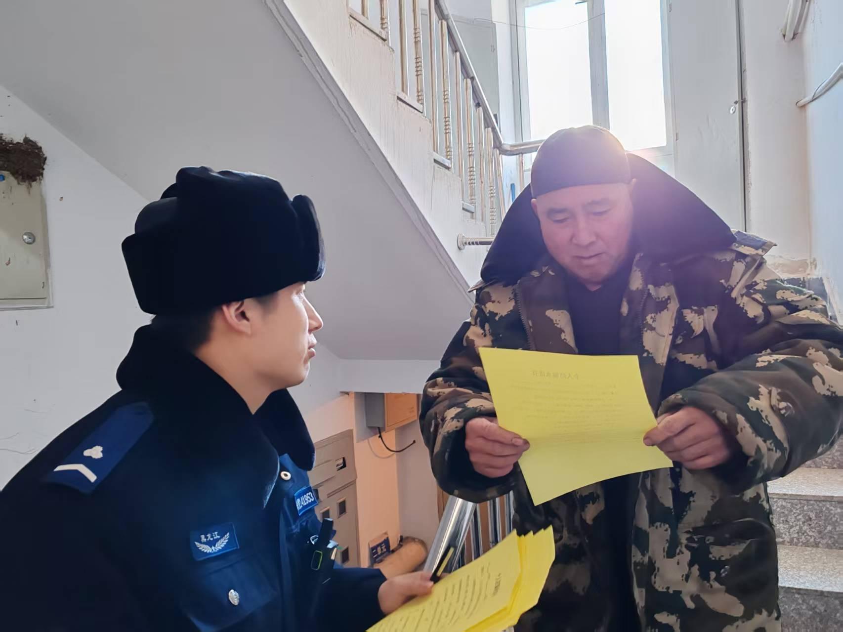 黑龍江經(jīng)濟(jì)網(wǎng)訊(婁暢)新春佳節(jié)將至,為切實(shí)守護(hù)好轄區(qū)群眾的“錢(qián)袋子”,讓居民度過(guò)一個(gè)平安、祥和、歡樂(lè)的新年,近日,呼瑪縣公安局緊抓歲末年初詐騙案件易發(fā)多發(fā)的關(guān)鍵節(jié)點(diǎn),組織警力深入社區(qū),開(kāi)展以“迎新春、送平安、防詐騙”為主題的入戶(hù)走訪宣傳活動(dòng),將反詐防騙的“安全錦囊”作為特殊的新年禮物送到千家萬(wàn)戶(hù)。
