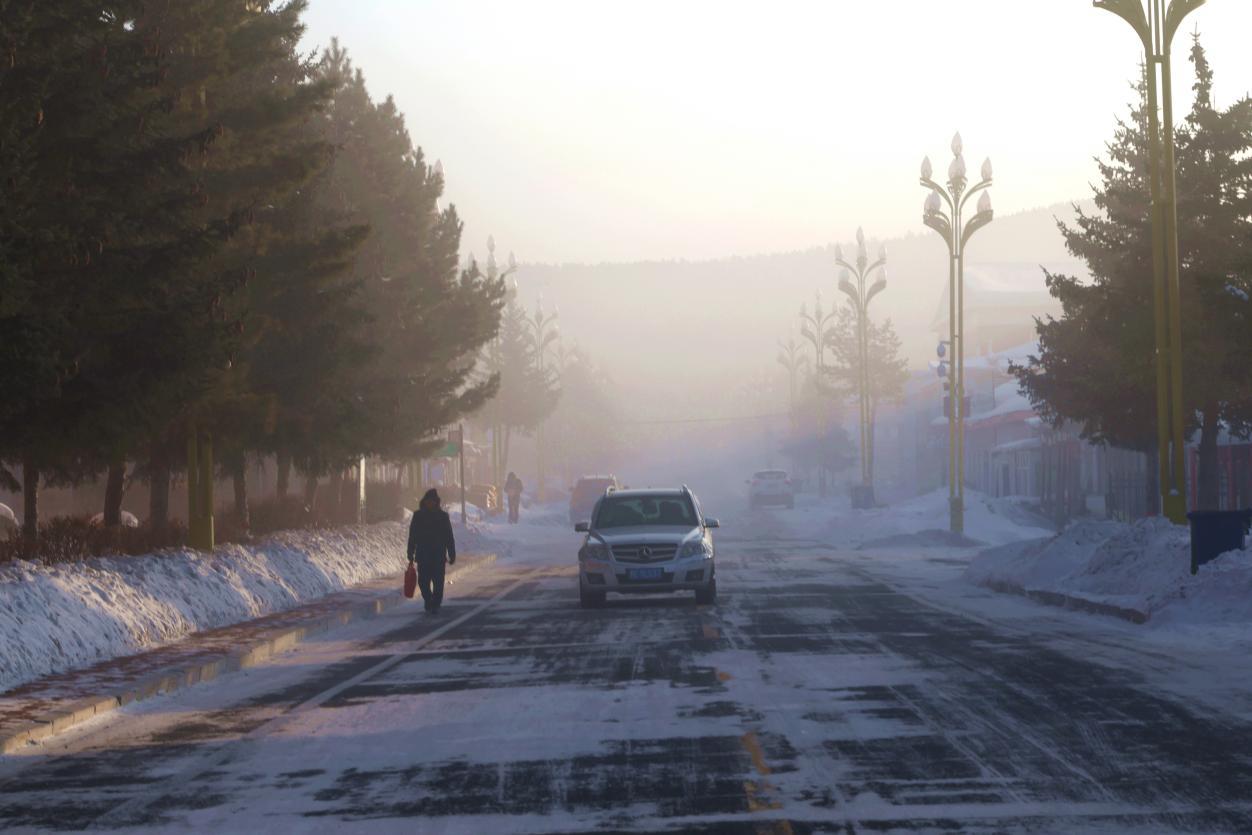 時(shí)至上午9時(shí),依舊寒氣逼人。遠(yuǎn)山、河流被白霧籠罩,若隱若現(xiàn),銀裝素裹宛如冰雪仙境。戶外寒風(fēng)刺骨,行人出門便感到如針扎般的刺痛,呵氣成霜、滴水成冰。