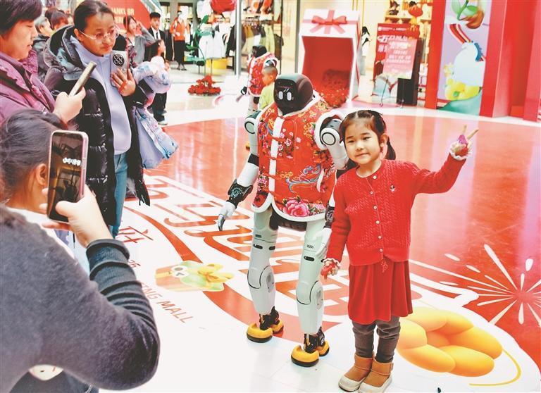 19日,正月初三。哈爾濱市道里區(qū)一家大型商場舉行了機器人舞蹈表演,吸引許多市民游客駐足觀看。走進場地的三個機器人身高1.5米左右,穿著紅色棉坎肩,十分喜慶。在音樂伴奏下,它們翩翩起舞,動作整齊劃一。表演結束后,機器人走進人群,與大家握手、合影、互動。春節(jié)假期,哈爾濱市多家商場都推出了機器人表演,讓市民游客與最新科技來個親密接觸。